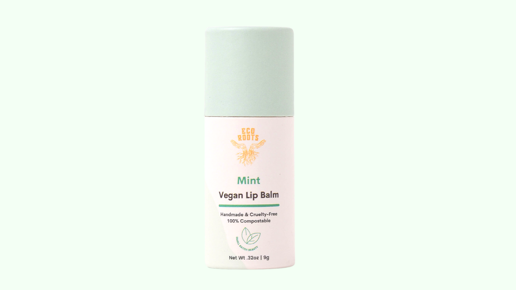 This zero waste lip balm packaging is made out of a paper tube, 100% compostable - a great sustainable vegan and plastic-free beauty product.
