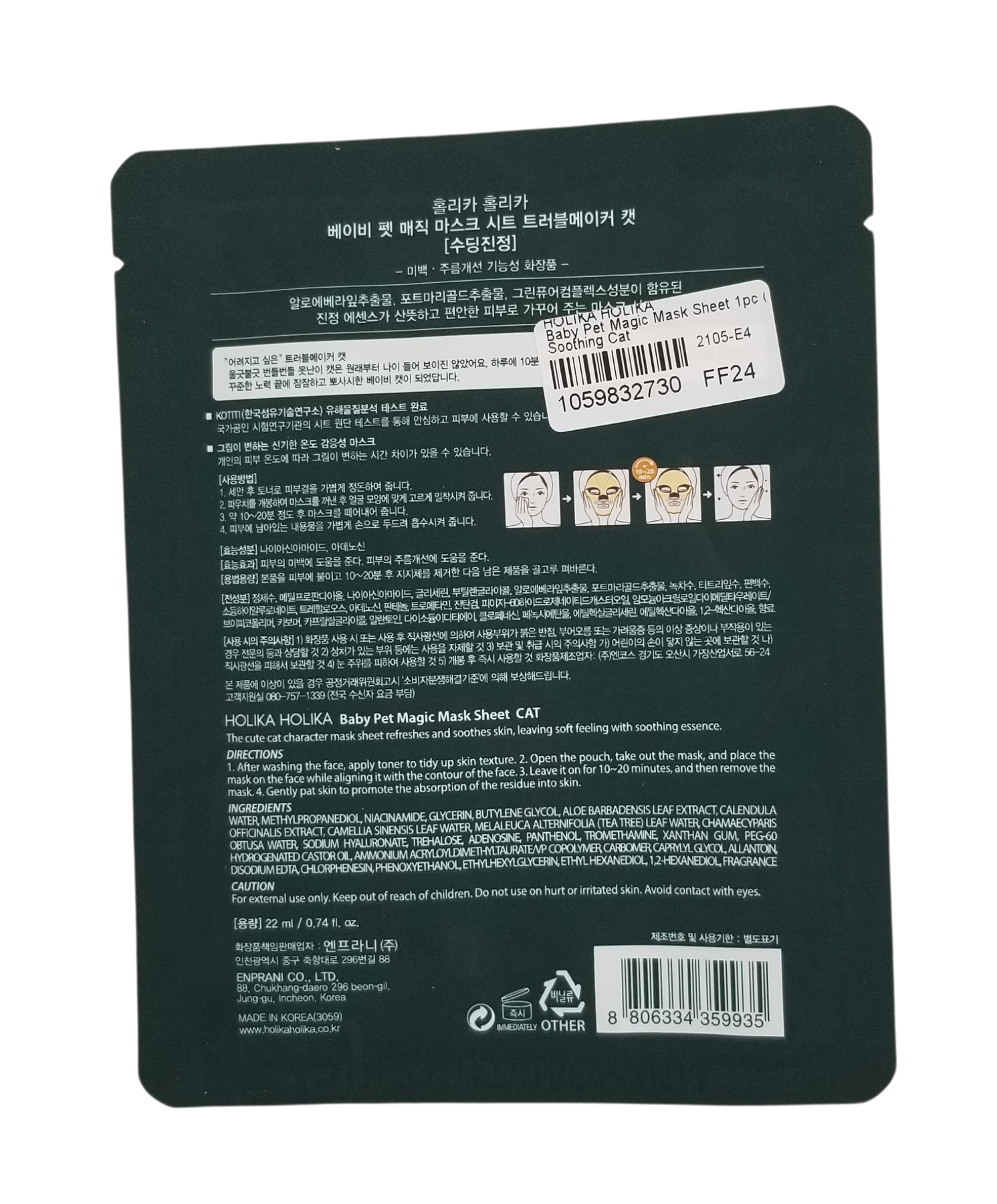 Time to purr-fect your beauty routine! The Baby Pet Magic Mask Sheet - Cat is a refreshing and soothing mask that will leave your skin feeling soft and smooth.
