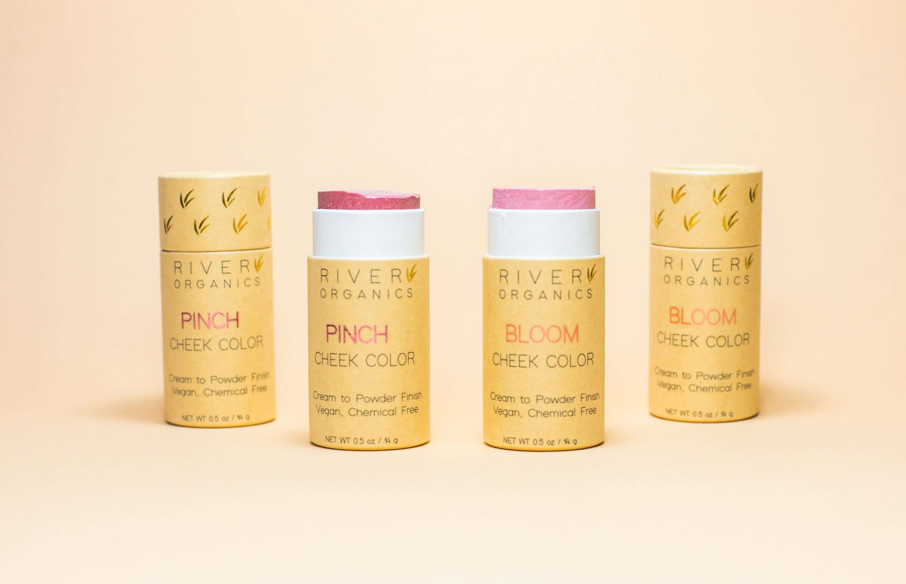 This zero waste blush stick in "Pinch" or "Bloom" goes smooth on your face with a nice light powdery finish. Gives your cheeks a warm glow with our vegan and cruelty-free blush stick. Pomegranate Seed & Red Raspberry oil is absorbed easily by the skin and help with moisture loss, keeping skin hydrated. This blush stick packaging is made out of a paper tube, 100% compostable - a great sustainable vegan beauty product.