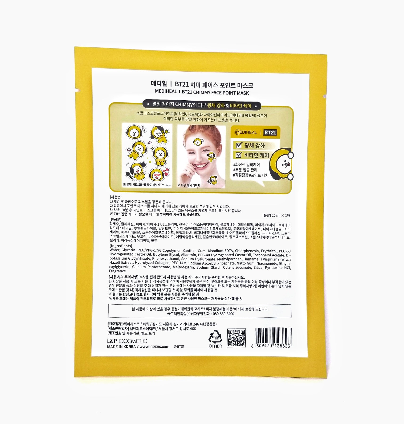 The BT21 Face Mask CHIMMY is formulated with vitamin C derivatives and niacinamide that are perfect for any skin type, but especially great for those with dull skin in need of a pick-me-up. These ingredients are everything you need to even out your skin tone and give you a complexion that is “smooth like butter”!