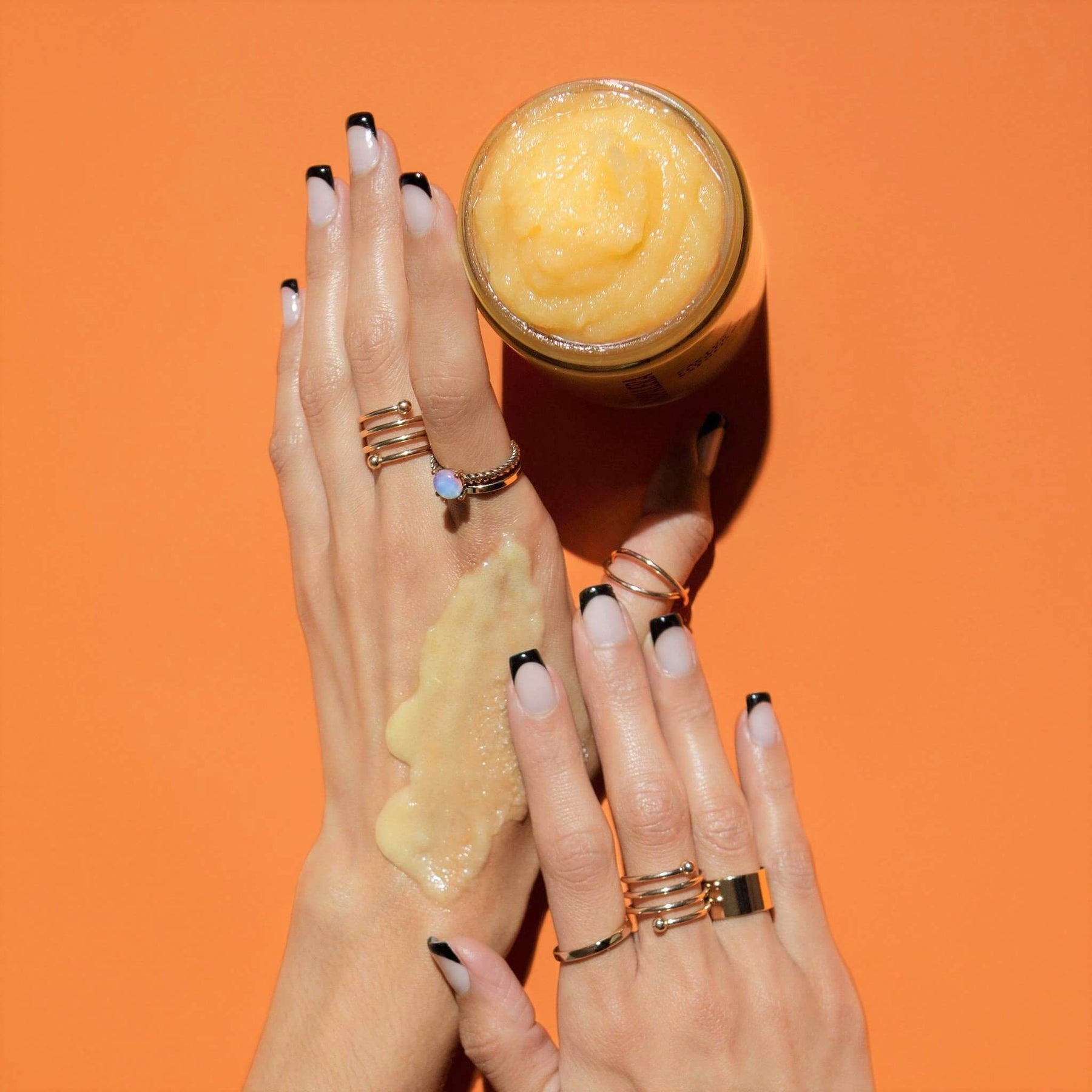 A cactus + oil scrub that gently exfoliates. This plant-based and vegan exfoliant is subtle scented with tangerine oil that helps to awake the spirit. It's a treat to slough off dry skin on your body and is gentle enough to use on your face.