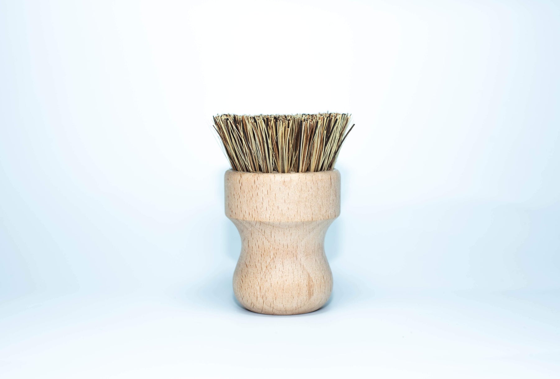 This dish scrubber has a natural beechwood handle and the bristles are made of union fibers (derived from hard Mexican plant fiber).