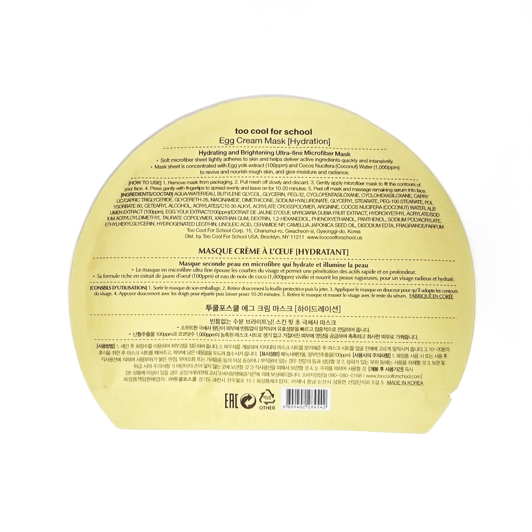 Too Cool For School’s Egg Cream Mask (Hydration) is an egg-tastic solution for dry, dull skin! This ultra-thin, protein-packed sheet mask helps reach the level of hydration your skin desires without leaving it feeling heavy or greasy