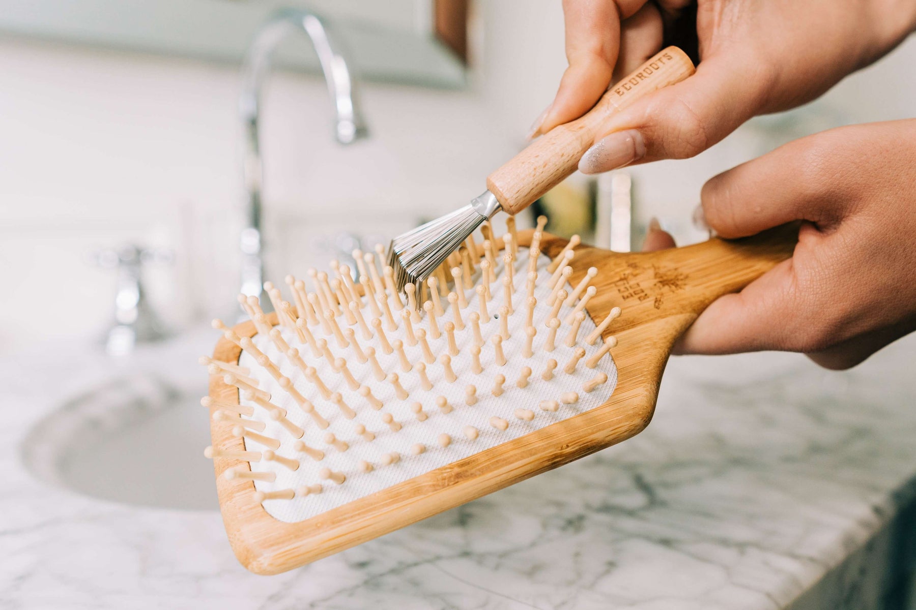 • Compostable Handmade Wooden Hair Brush + Brush Cleaner